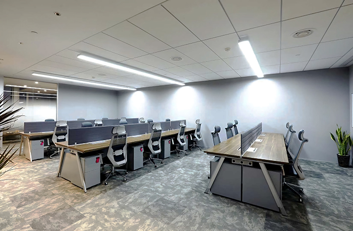 吉樹的辦(bàn)公(gōng)區(qū)域都是采用(yòng)的開放式辦(bàn)公(gōng),因此這種開放式的工(gōng)位被大面積的使用(yòng),原木(mù)色桌面搭配綠植,給人更好的心情,灰色擋闆搭配灰色辦(bàn)公(gōng)椅呼應灰色的牆面,營造一種冷靜、謹慎的工(gōng)作(zuò)環境,窗邊的吧椅方便員工(gōng)進行獨立思考、分(fēn)析。
