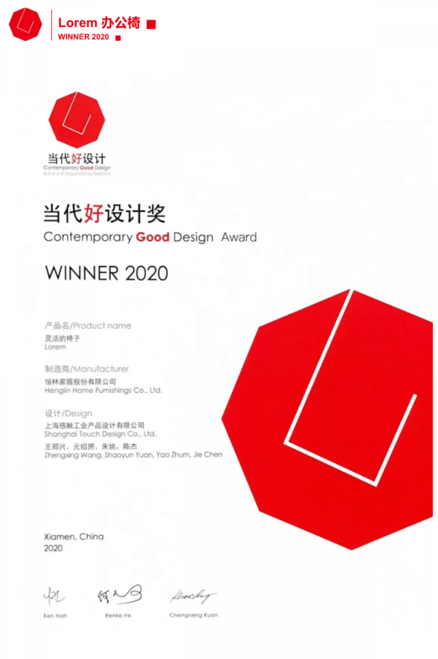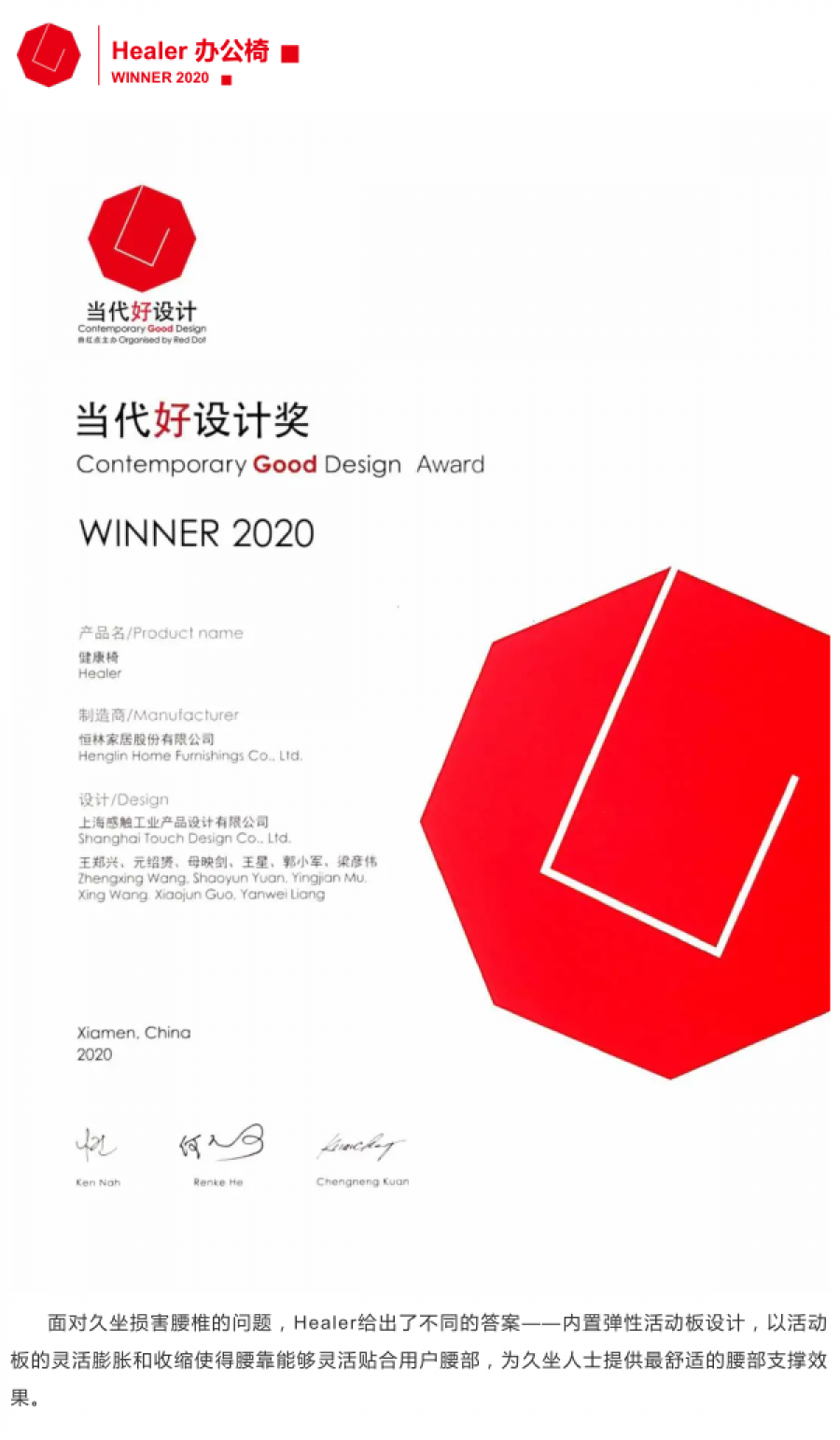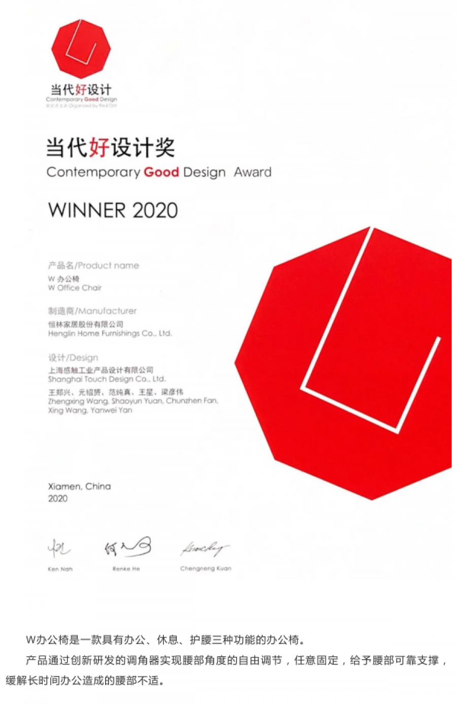 榮耀見證 | 恒林五款産(chǎn)品齊獲2020當代好設計獎